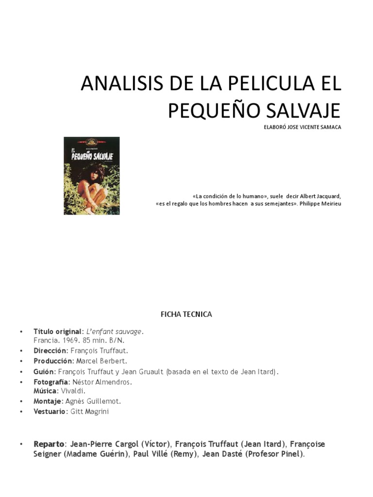 Martes 22 octubre 2019 1020 pitbox 0 Comentarios. La película narra la historia de Víctor un niño encontrado en el bosque donde aparentemente había pasado toda su niñez que poseen un comportamiento totalmente animal. Ensayo El Pequeño Salvaje.