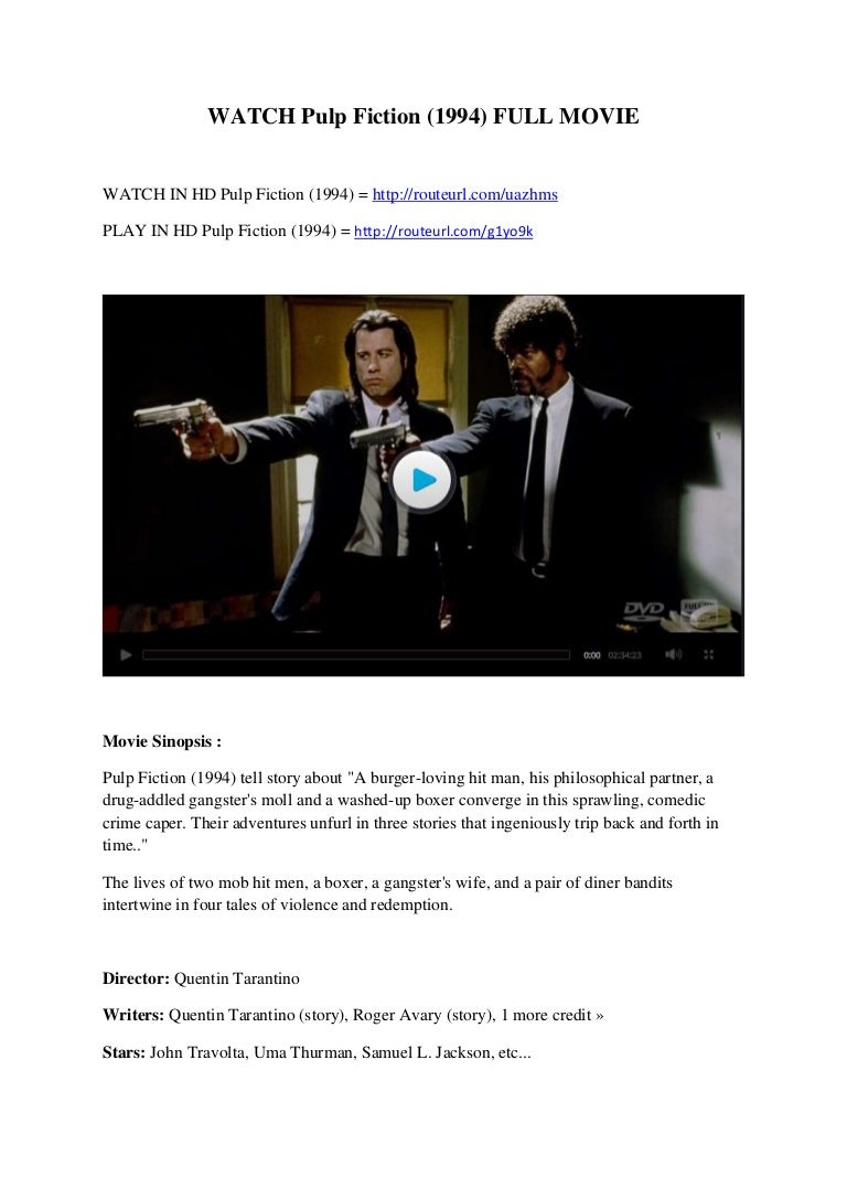 Pulp Fiction EMPIREZ Watch Pulp Fiction Online 1994 Full Movie Free HD720PxWatch Pulp Fiction Online 1994 Full MovieS Free HD. Their adventures unfurl in three stories that ingeniously trip back and. HttpsyoutubeVshCnruCvkc-Spotify de Pulp Fiction.
